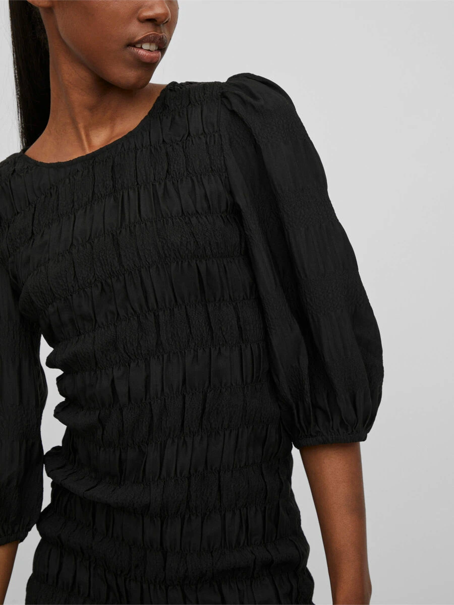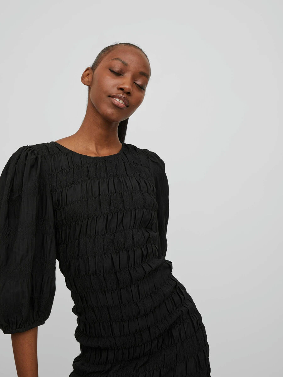 – Gesmokte jurk met 3/4-mouwen