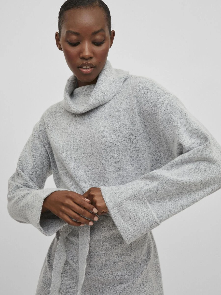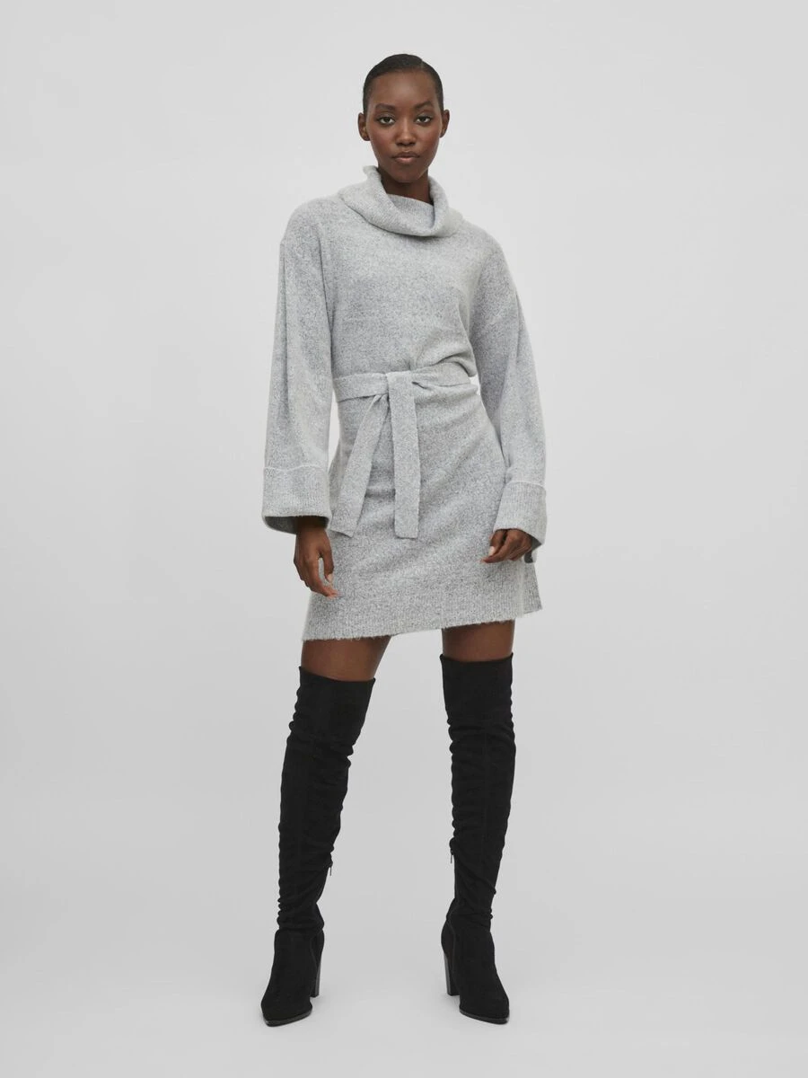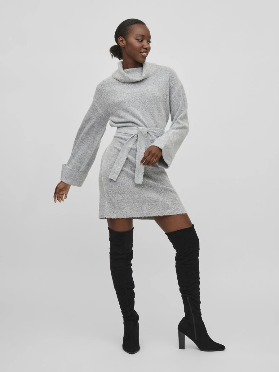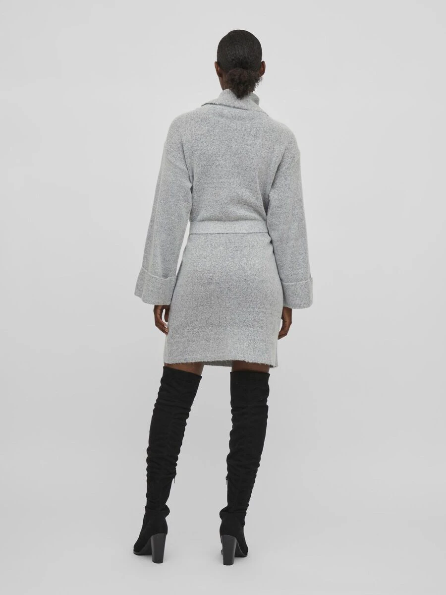 – Gebreide jurk met lange mouwen en riem